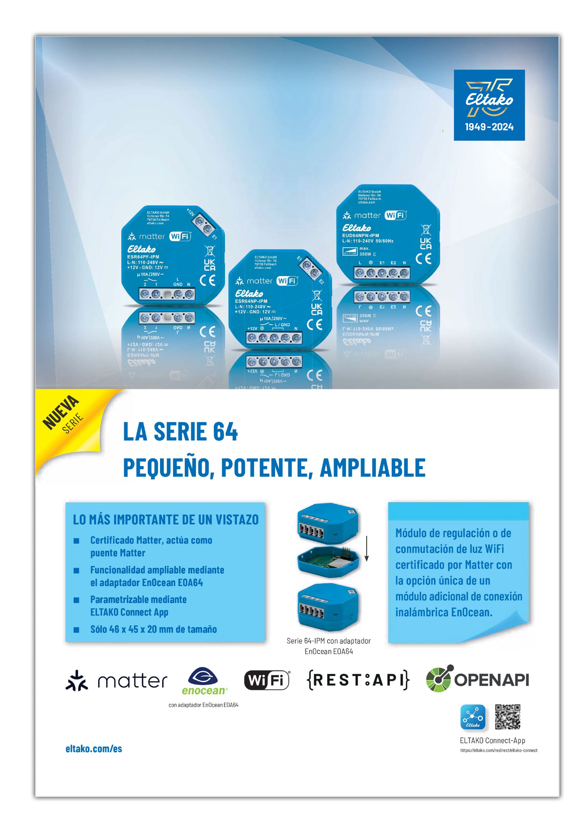 Eltako es una empresa alemana fundada en 1949, especializada en el desarrollo, fabricación y distribución de productos innovadores para instalaciones eléctricas y sistemas de control en edificios